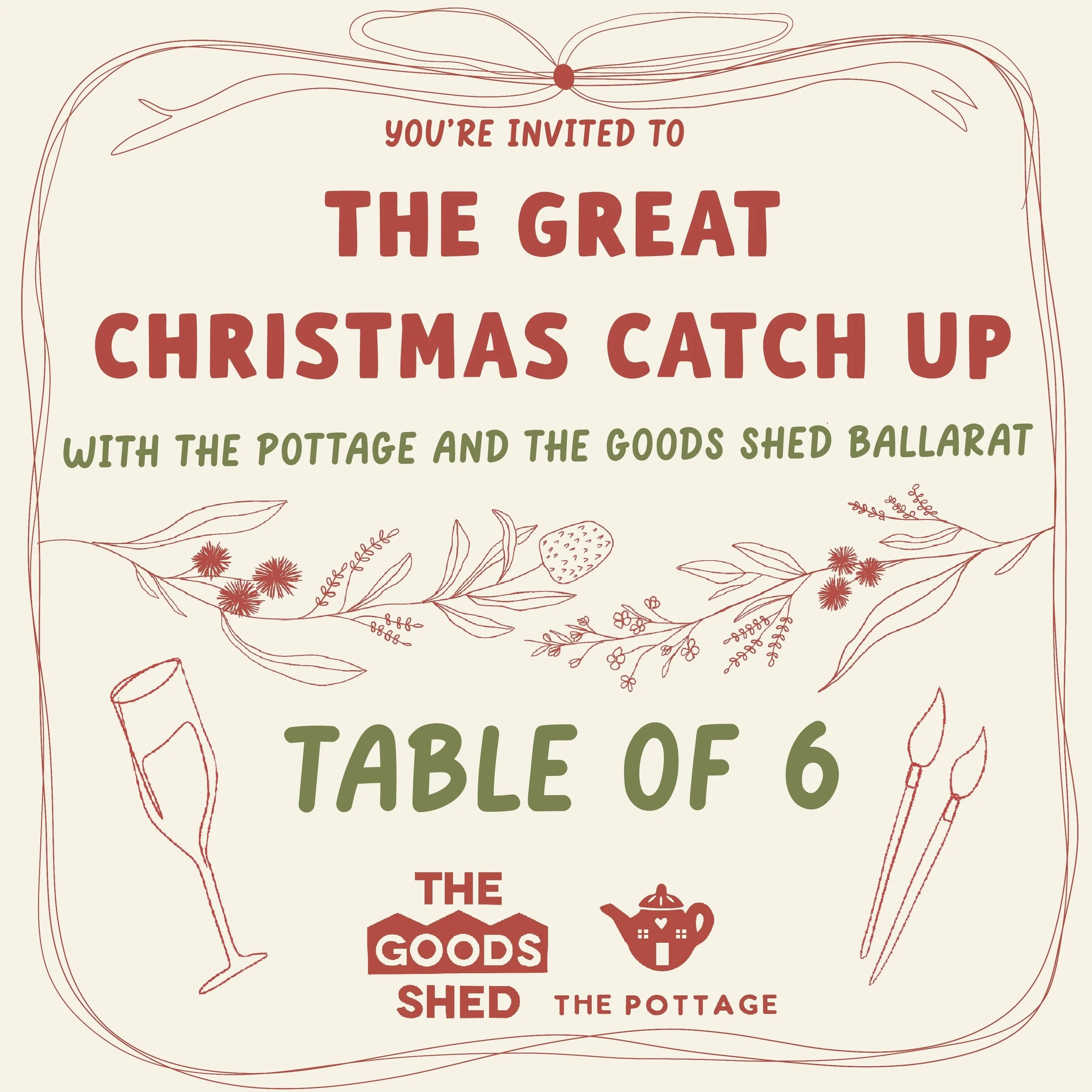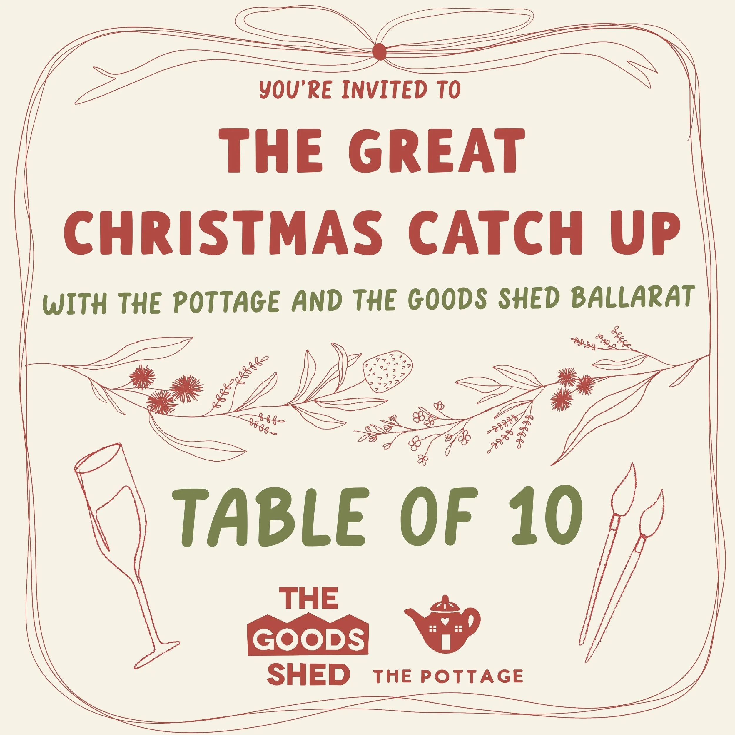 The Great Christmas Catch up - Table of 10 Sale Price: $1,150.00 Original Price: $1,200.00 Sale The Great Christmas Catch Up - Table of 6 (SHARE TABLE) Sale Price: $700.00 Original Price: $720.00 Sale The Great Christmas Catch Up - Table of 5 (SHARE TABLE) Sale Price: $585.00 Original Price: $600.00 Sale The Great Christmas Catch Up - Table of 4 (SHARE TABLE) Sale Price: $470.00 Original Price: $480.00 Sale The Great Christmas Catch Up - Table of 2 (SHARE TABLE) $240.00